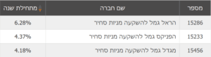 דוגמא לחברות המובילות במסלול כללי מתחילת השנה: